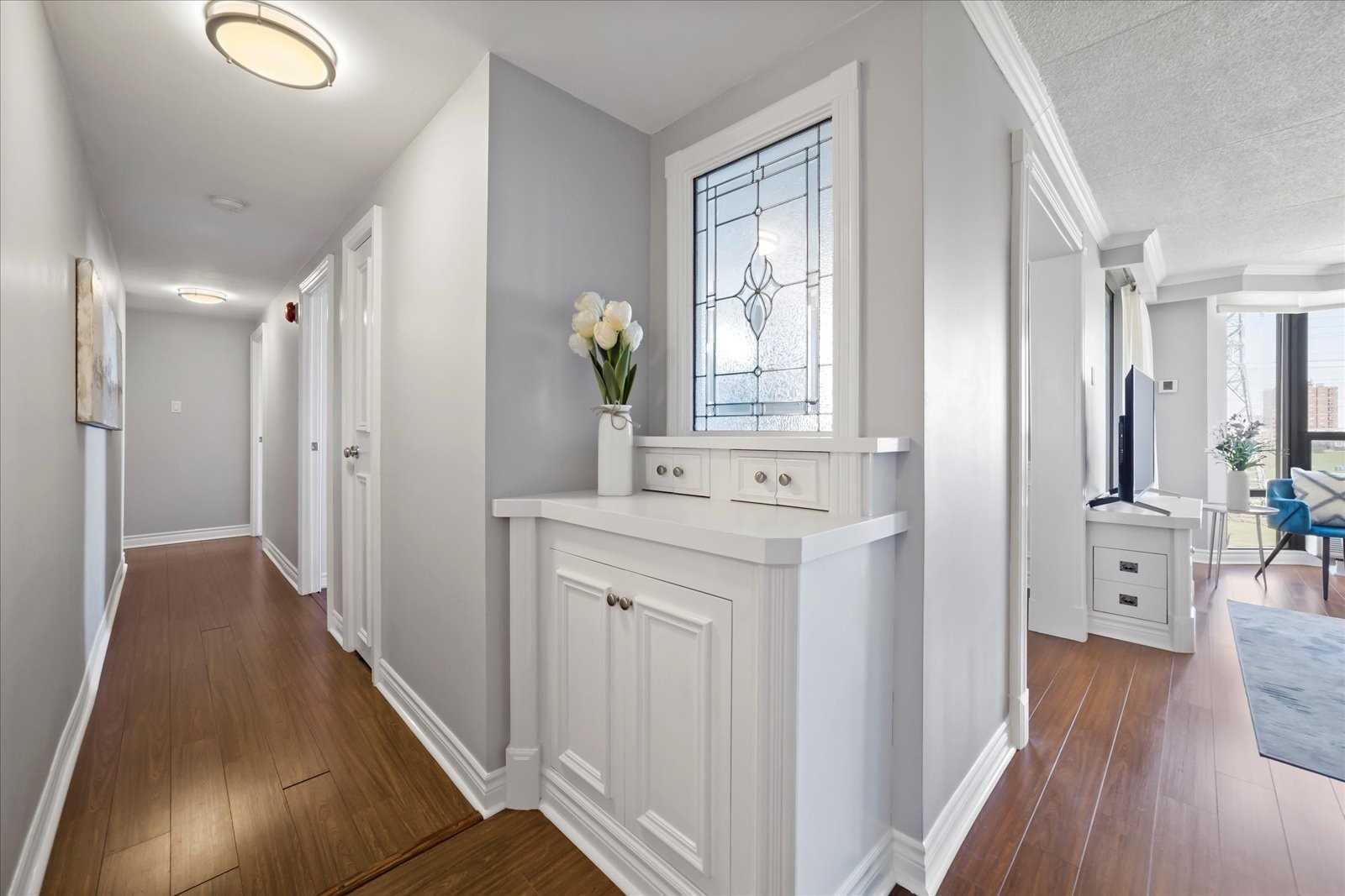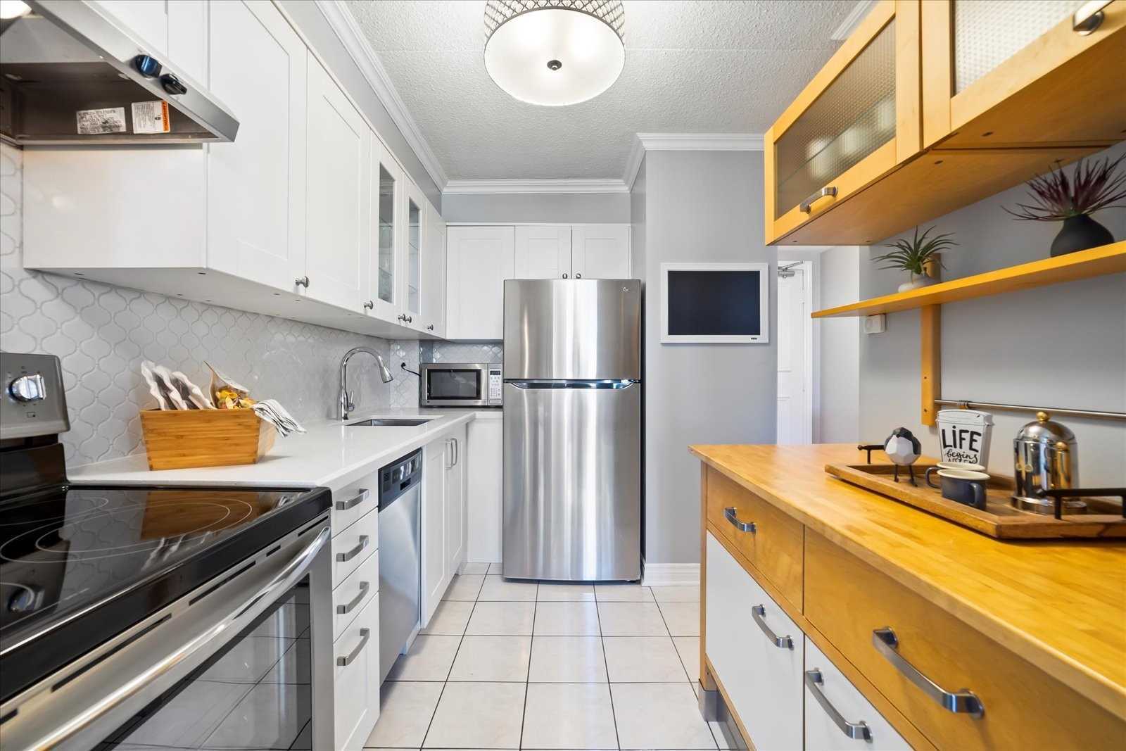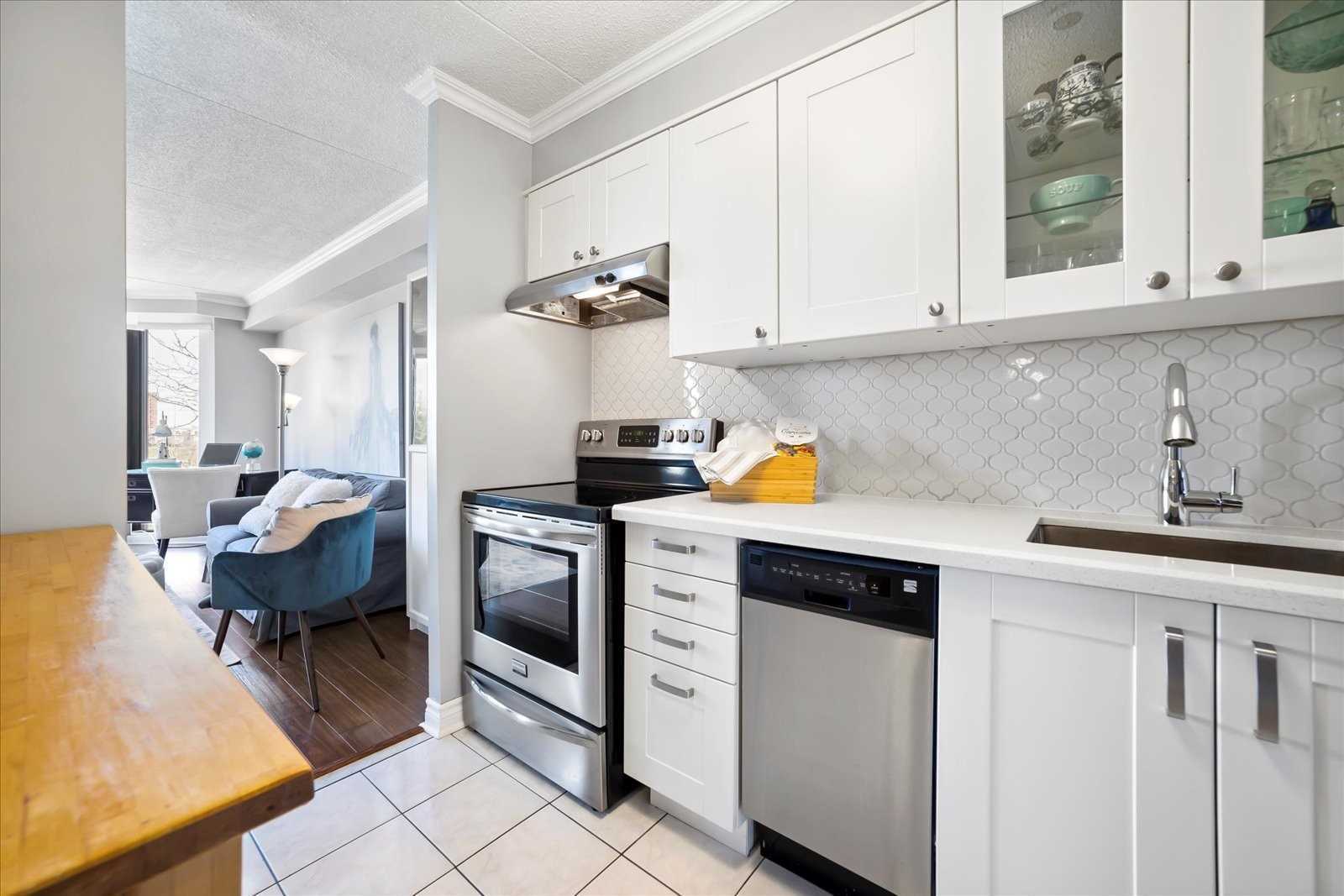 Bright 2 Bedroom 2 Bathroom Apartment In The Heart Of Pickering. Tastefully Customized And Upgraded Throughout! Renovated Kitchen With Crown Moulding, Stainless Steel Appliances, Quartz Countertops, And Ceramic Backsplash. Bright Living Room With Bay Window, Custom Built-In Stand, Crown Moulding And Walkout To Oversized Covered Balcony (One Of Only Five Units In The Building With A Double Balcony). Formal Dining Room (Previously 3rd Bedroom) Features Crown Moulding, Built-In Buffet, Wainscotting, And Wall Sconces. Primary Bedroom Offers Walkout To Balcony, Crown Moulding, 4Pc Ensuite, Bay Window, And Large Double Closet. Secondary Bedroom Features Double Closet And Crown Moulding. Great Layout With Custom Trim And Unique Features Throughout; Have This Move In Ready Home Stand Apart From The Rest! Ensuite Laundry Room With Plenty Of Storage, Exclusive Parking Spot, Unobstructed Park View, And Steps To Everything!
